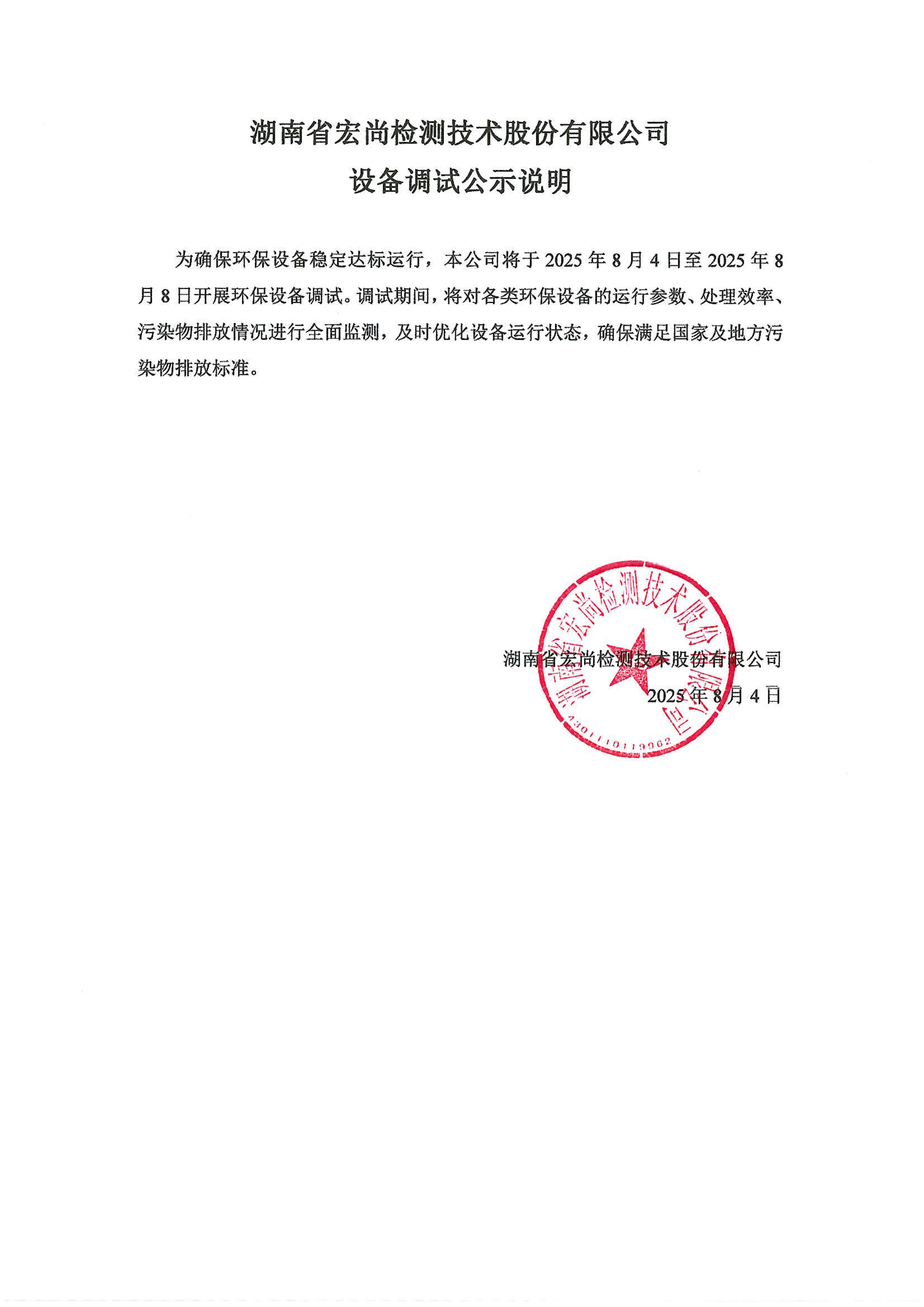 湖南省宏尚检测技术股份有限公司设备调试公示说明