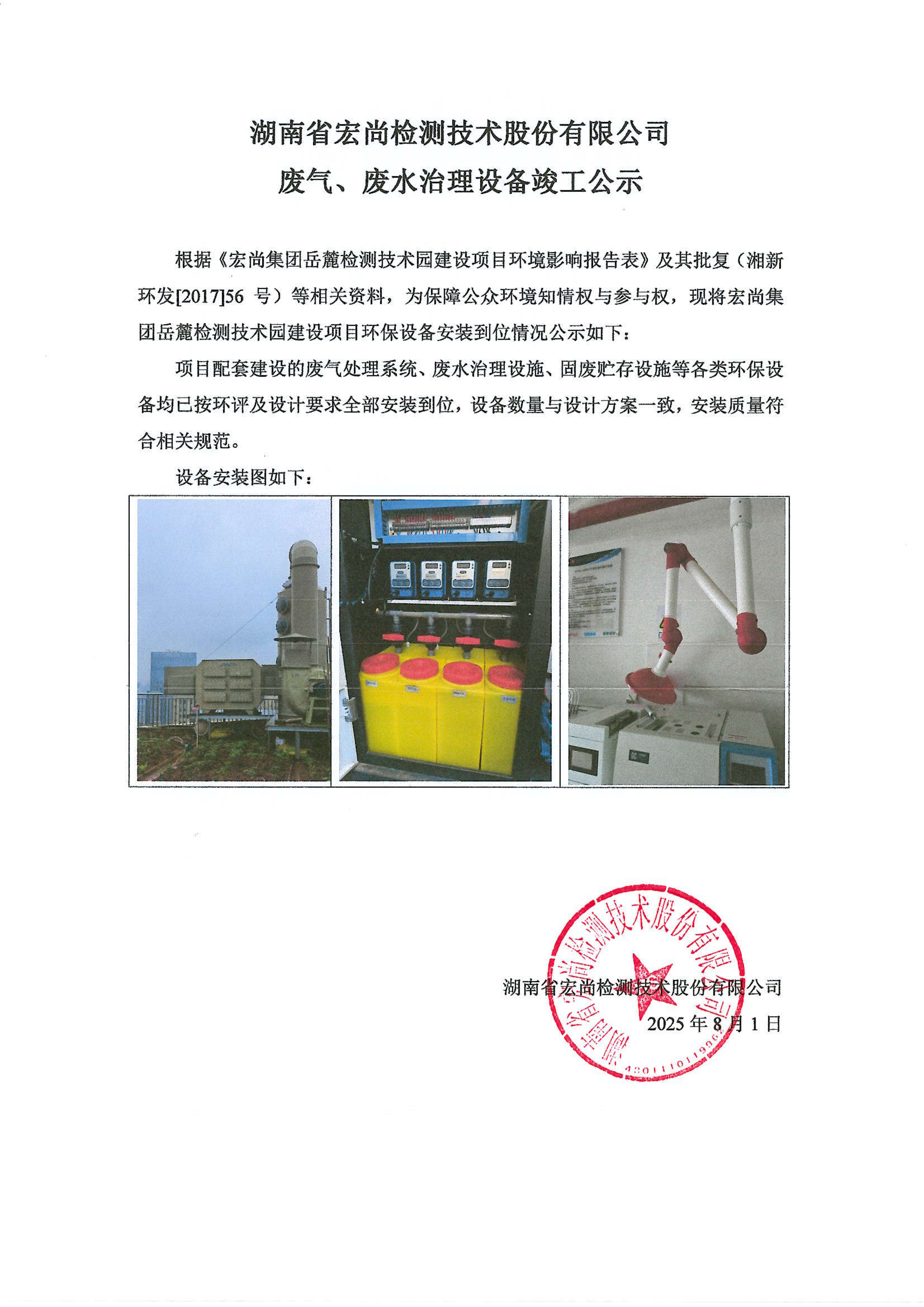 湖南省宏尚检测技术股份有限公司废气、废水治理设备竣工公示